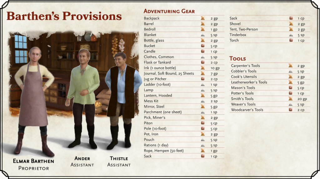 Barthen’s provision is een gewone shop voor adventure gear. De groep kwam hier terecht nadat zij de ossenkar met goederen van Gundren Rockseeker hier achter lieten.